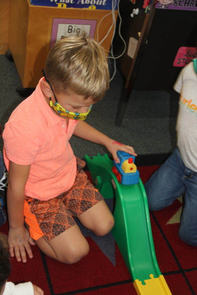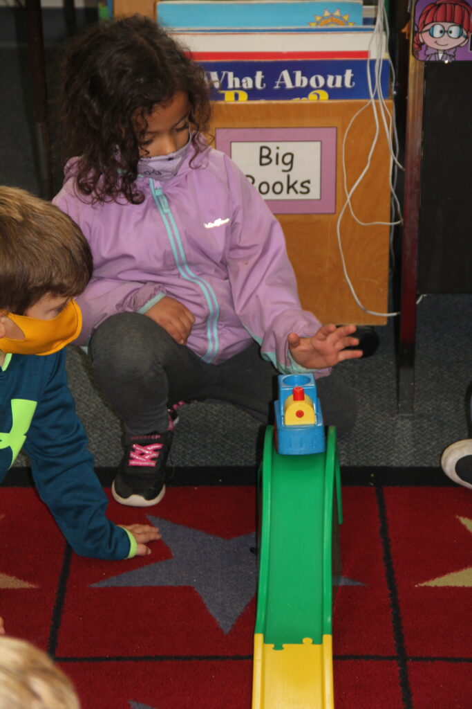 In Mrs. Murphy’s kindergarten class this week, KB students are conducting a unit on force. Earlier this week they learned about pushing and pulling, today they enjoyed an experiment on gravity and tomorrow they’ll learn about friction. Great job kindergarteners!