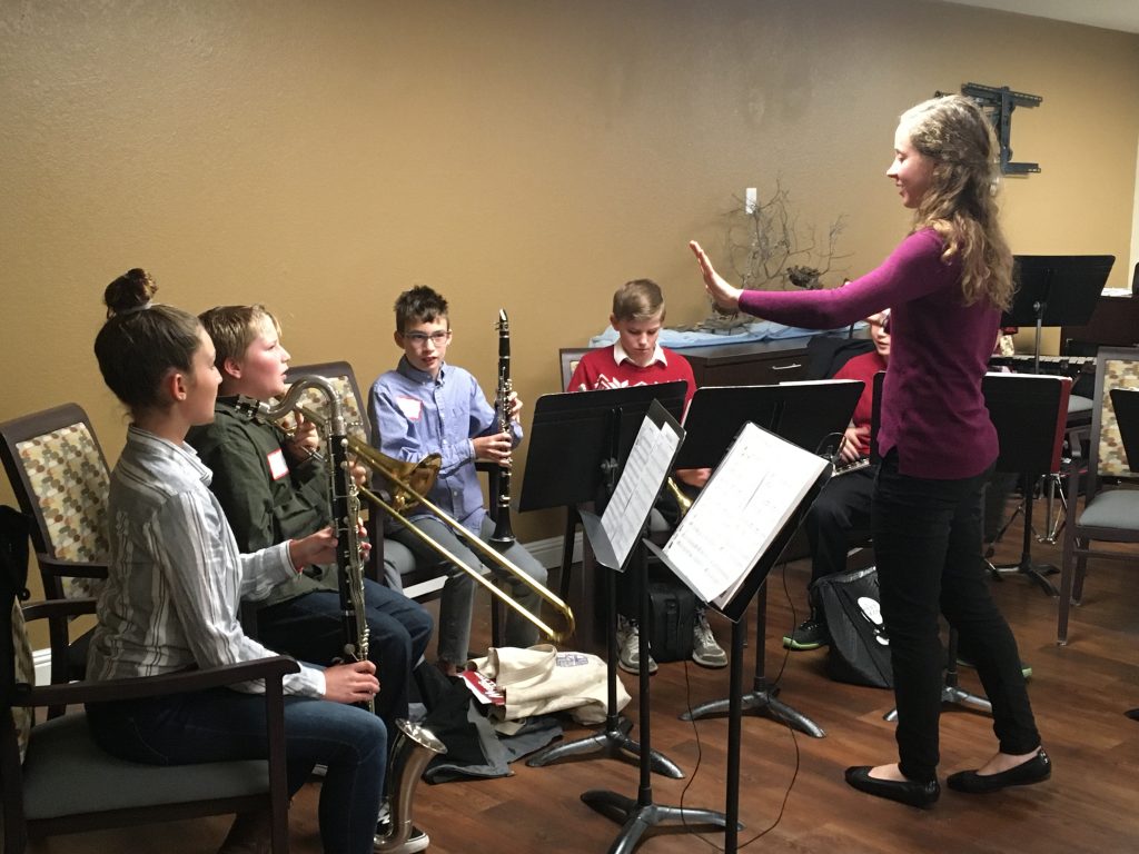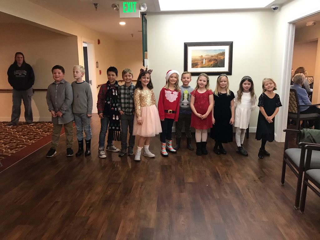 This weekend our second graders and advanced band students put on a concert for the residents at Brookdale Senior Living in Scotts Valley. Our students delivered handmade cards and invited the residents to the main living space for the concert. Residents and guests enjoyed Christmas carols and music performed by Baymonte students and led by Baymonte music director, Elizabeth Barrett.