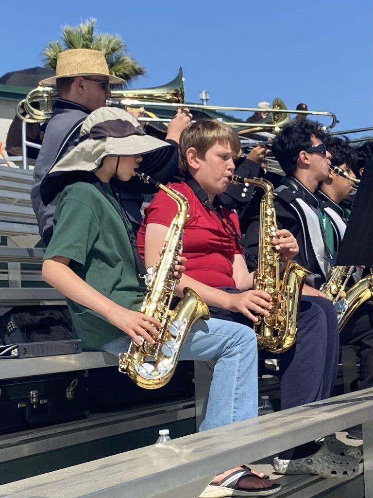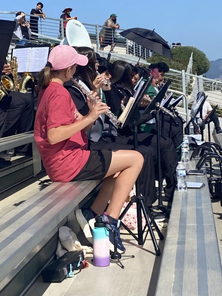 Baymonte’s pep band had an amazing experience joining the Pajaro Valley High School band at their home football game against Denair High School! Led by band director Emilio Alaniz, the Pajaro Valley band welcomed our students with open arms, giving them a chance to perform as part of a larger ensemble. It was such a fun opportunity for our students to make music and cheer on the team together! Thank you to Miss Barrett for arranging and chaperoning this experience. Our band will join Pajaro’s again on October 11th and November 1st.