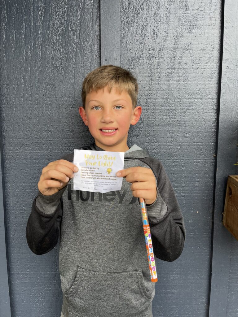 This year, K-4 students who show exemplary behavior during recess, snack and lunch are eligible to be nominated for a “Shine Your Light” award. Congratulations to the winners for the week of December 9th: Jackson S., Eli R., and Natalie W. (not pictured). Thank you for being a shining light on our campus!