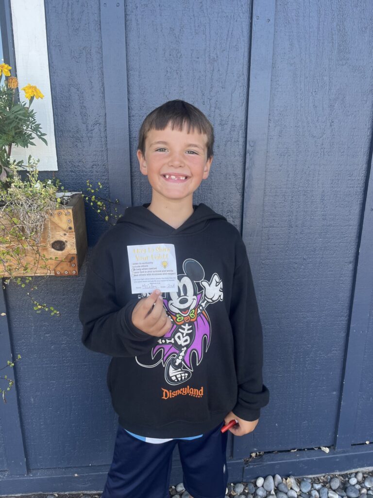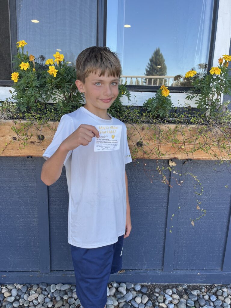 This year, K-4 students who show exemplary behavior during recess, snack and lunch are eligible to be nominated for a “Shine Your Light” award. Congratulations to the winners for the week of September 16th: Sawyer F. (not pictured), Macallan T., and Gavin S. Thank you for being a shining light on our campus!