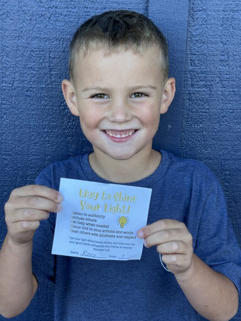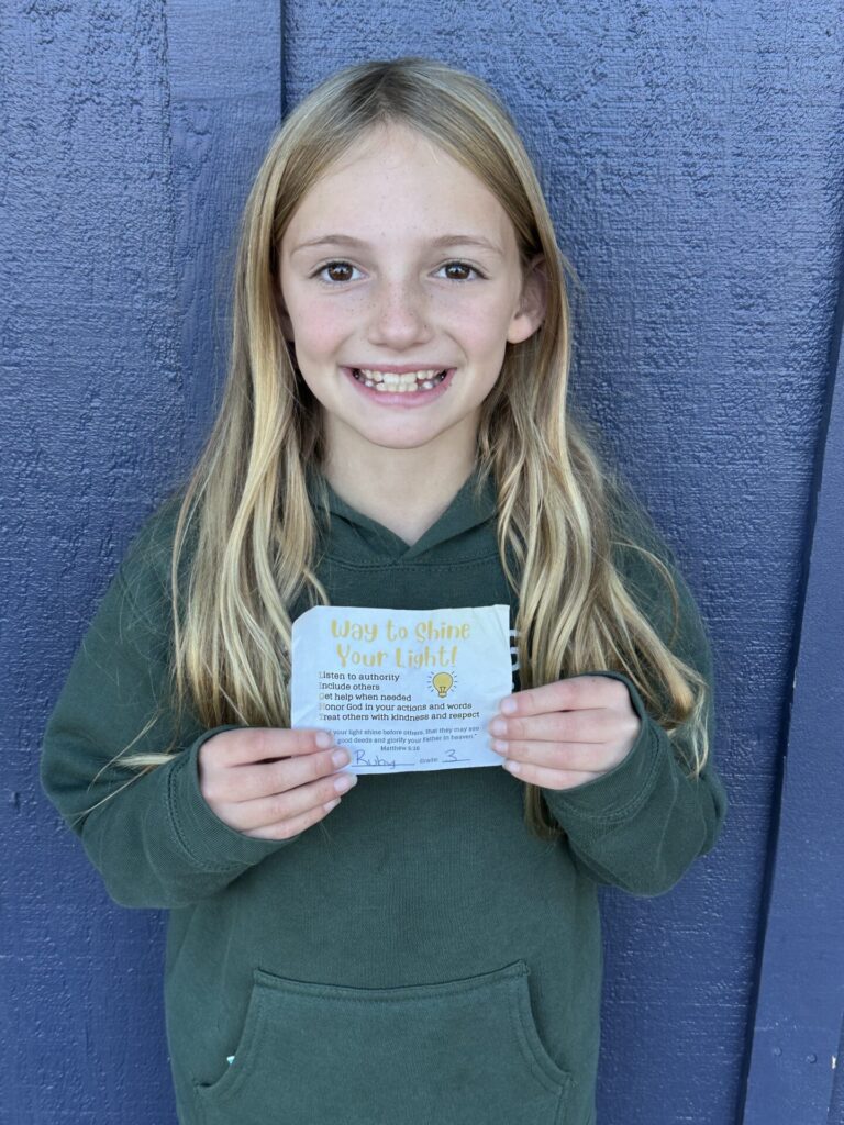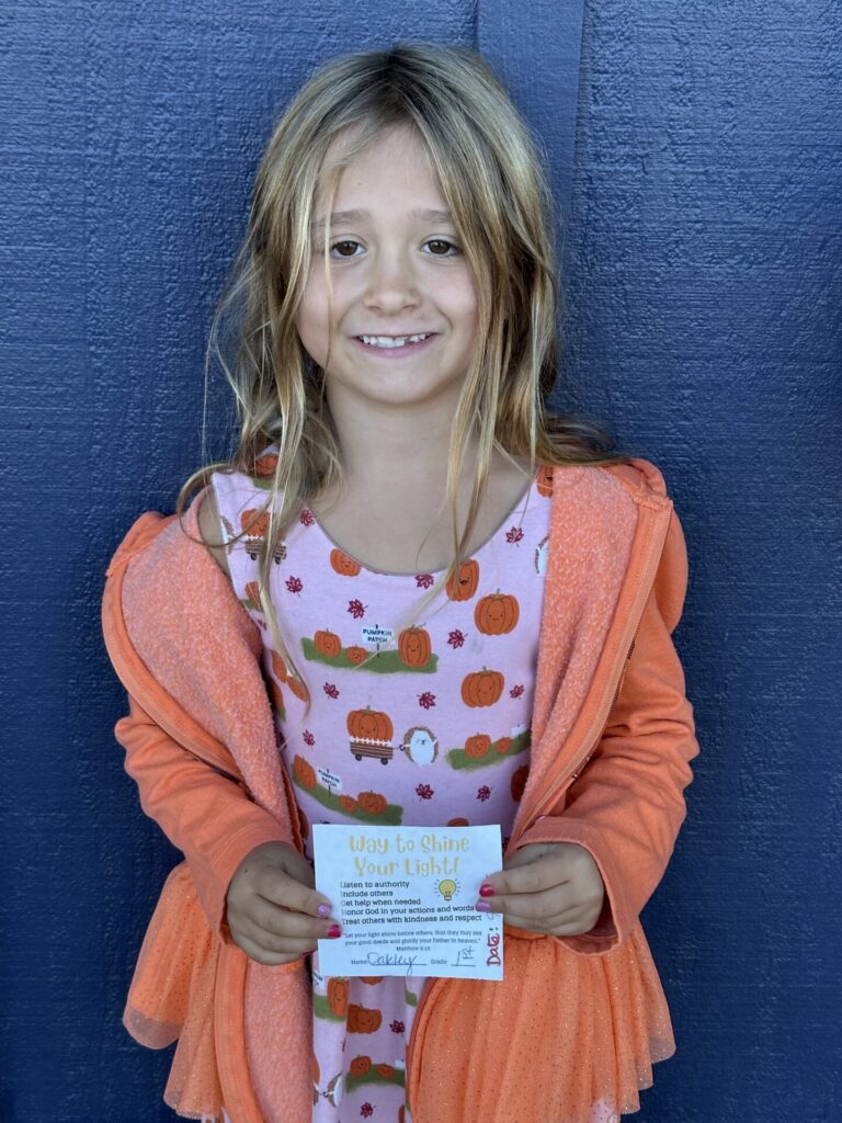 Our K-4 students who show exemplary behavior during recess, snack and lunch are eligible to be nominated for a “Shine Your Light” award. Congratulations to the winners for the week of October 13th: Rory R., Oakley C., and Ruby P. Thank you for being a shining light on our campus!