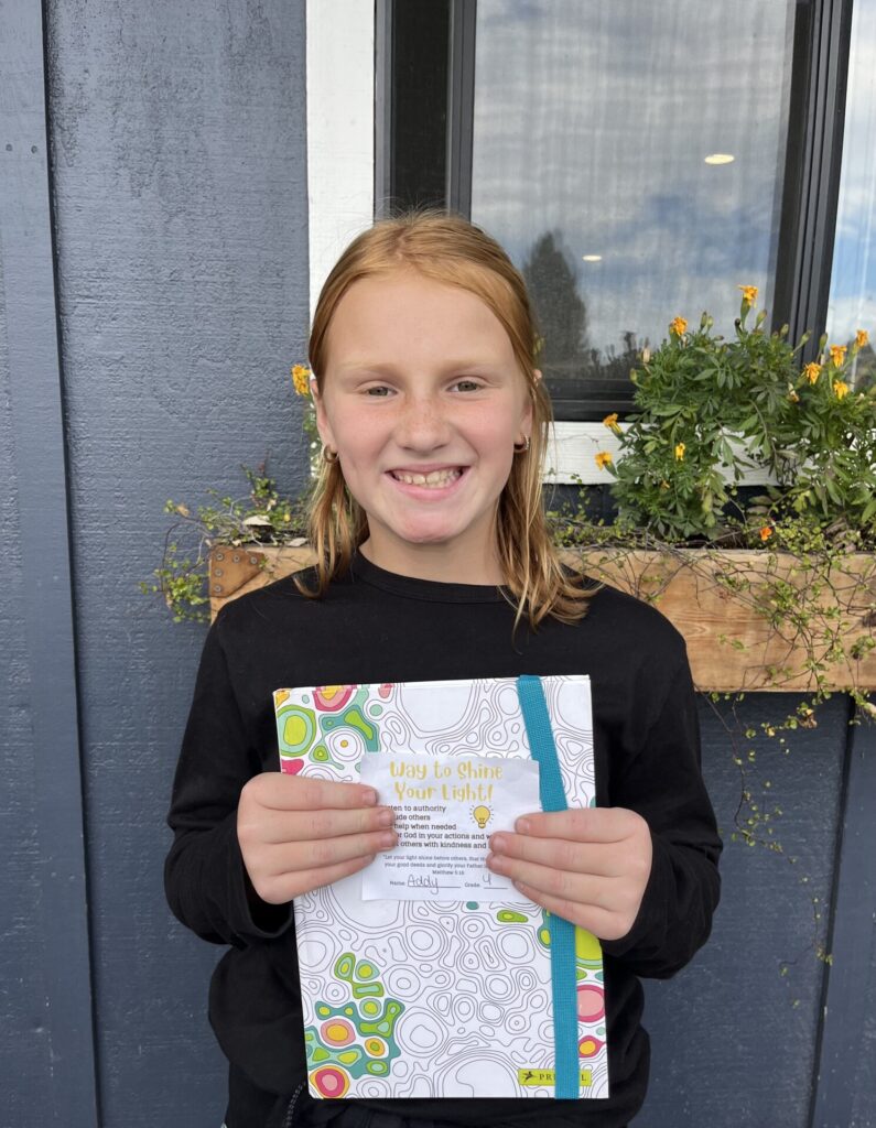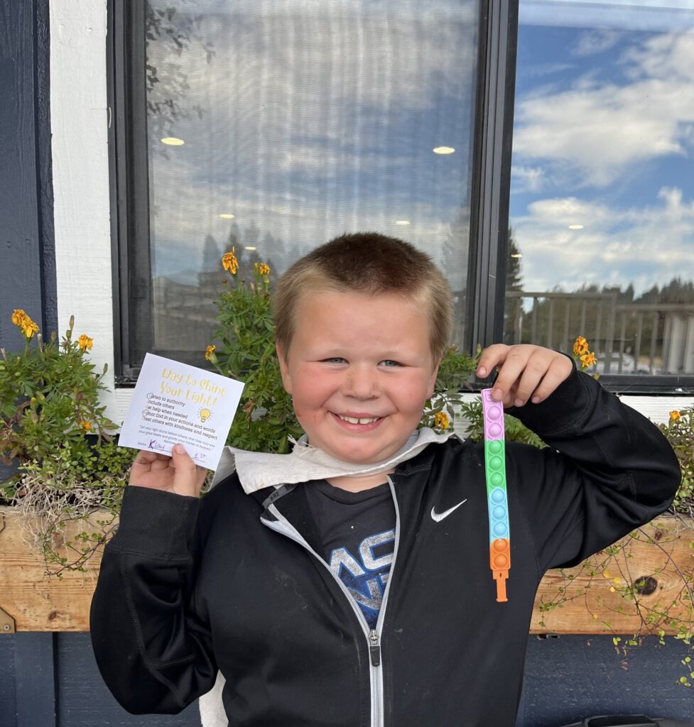 This year, K-4 students who show exemplary behavior during recess, snack and lunch are eligible to be nominated for a “Shine Your Light” award. Congratulations to the winners for the week of October 21st: Sage M., Klayton N., and Addi W. Thank you for being a shining light on our campus!