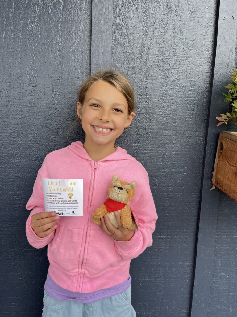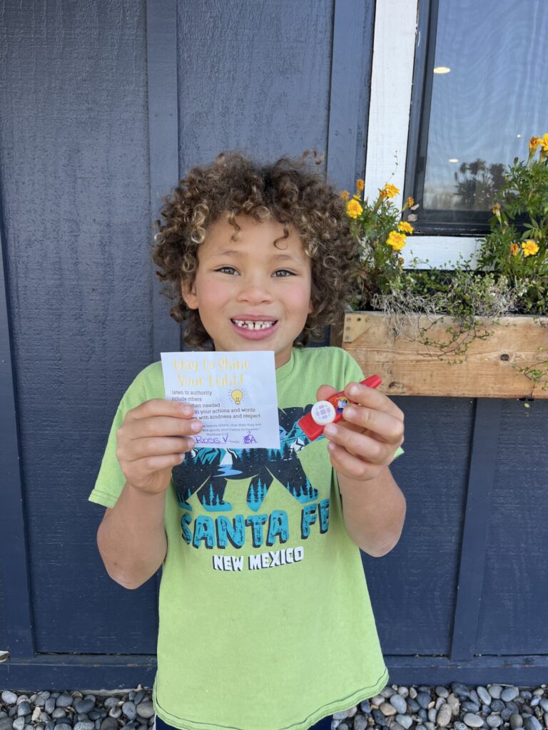 This year, K-4 students who show exemplary behavior during recess, snack and lunch are eligible to be nominated for a “Shine Your Light” award. Congratulations to the winners for the week of November 4th: Violet H., Ross V., and Blake S. Thank you for being a shining light on our campus!