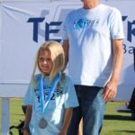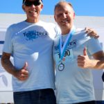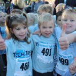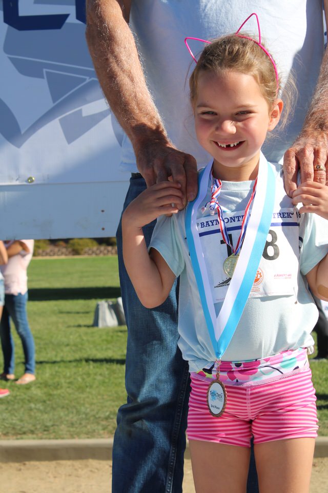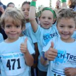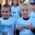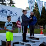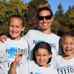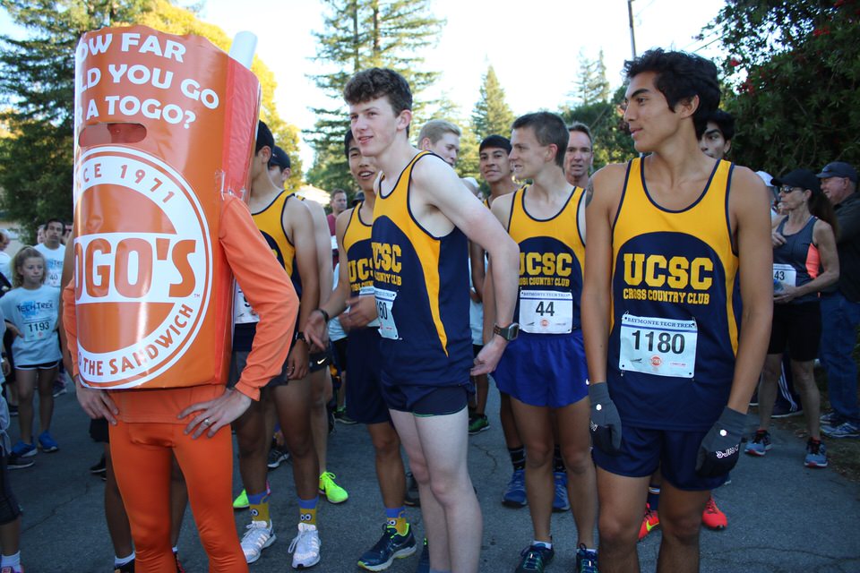 Special guests, Santa Cruz Warriors Mav’Riks and Scotts Valley Togo’s mascot, helped Baymonte Middle School PE Teacher Kristi Trefethen with the pre-race warm-ups. A record number of registered runners (367) participated in the Tot Trot, 1K, and 5K races. Special running guests included Togo’s Cup Man and UCSC’s Cross Country Team. UCSC team member, Robert Udell, won first place in the 5K and set a new record for the Tech Trek with a time of 15 minutes, 41 seconds. A complete list of 5K race results can be seen here. A complete list of 1K race results can be seen here.